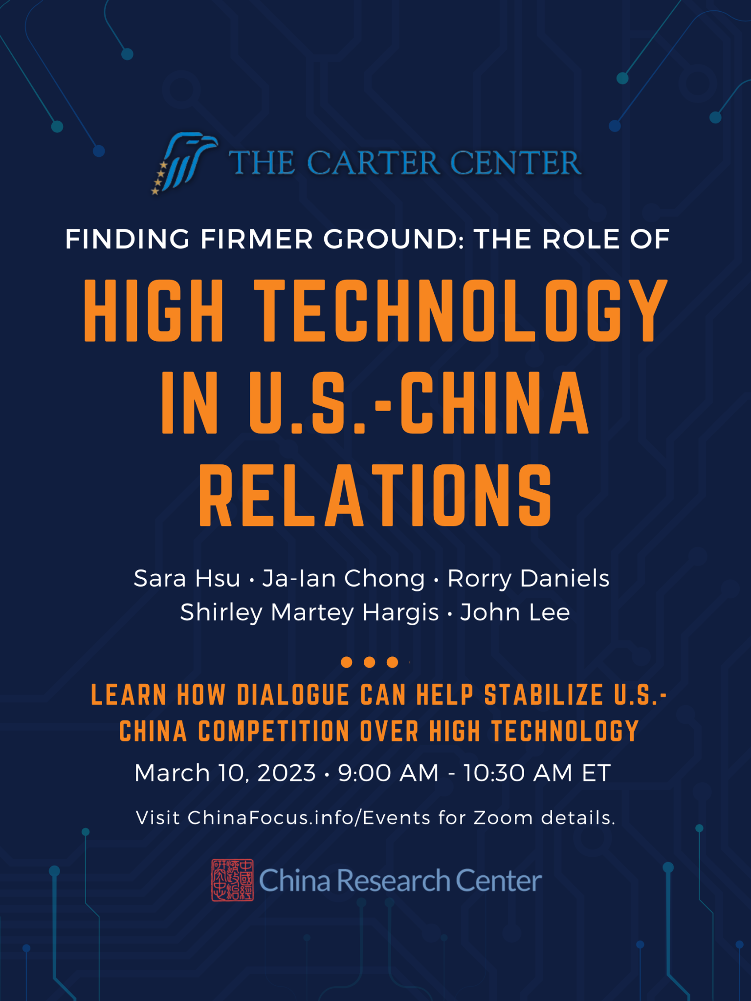 Atlanta (March 2, 2023) – Released last month, the fourth report in The Carter Center’s Finding Firmer Ground report series, “Finding Firmer Ground: The Role of High Technology in U.S.-China Relations”, examines how technological advancement has increased distrust and uncertainty in U.S.-China relations.