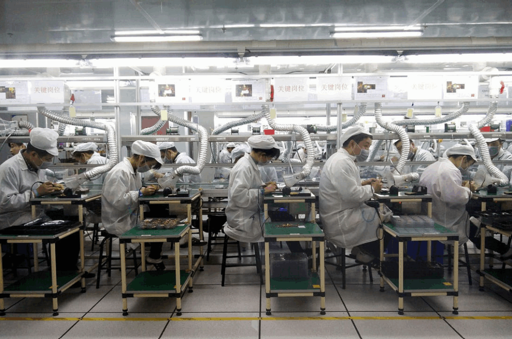 Workers at Foxconn Technology Group, Zhengzhou, Henan province. PRC. 2019. Source